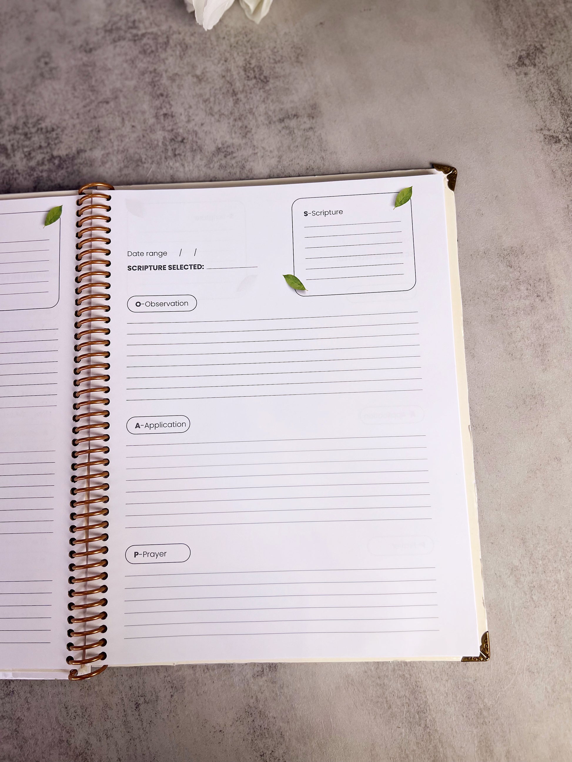 - Guided Bible Study: Explore the Scripture with guided prompts and utilize the SOAP method for a comprehensive study experience.